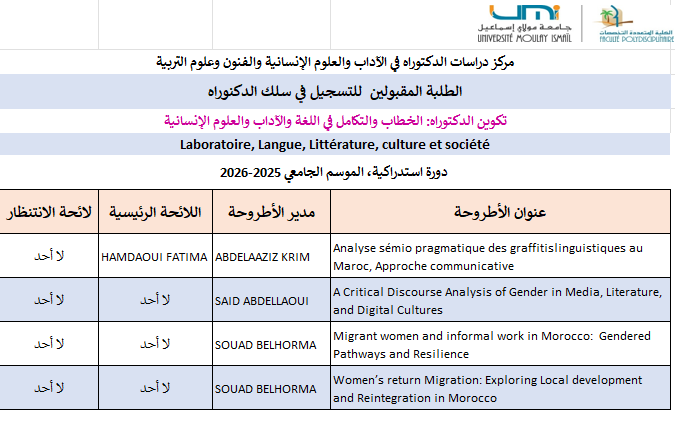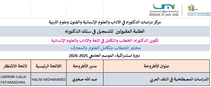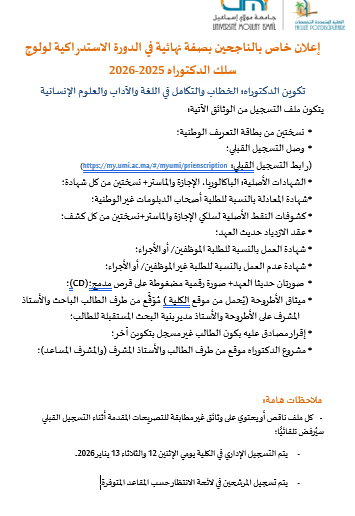 خاص بالناجحين بصفة نهائية في الدورة الاستدراكية لولوج سلك الدكتوراه 2025-2026