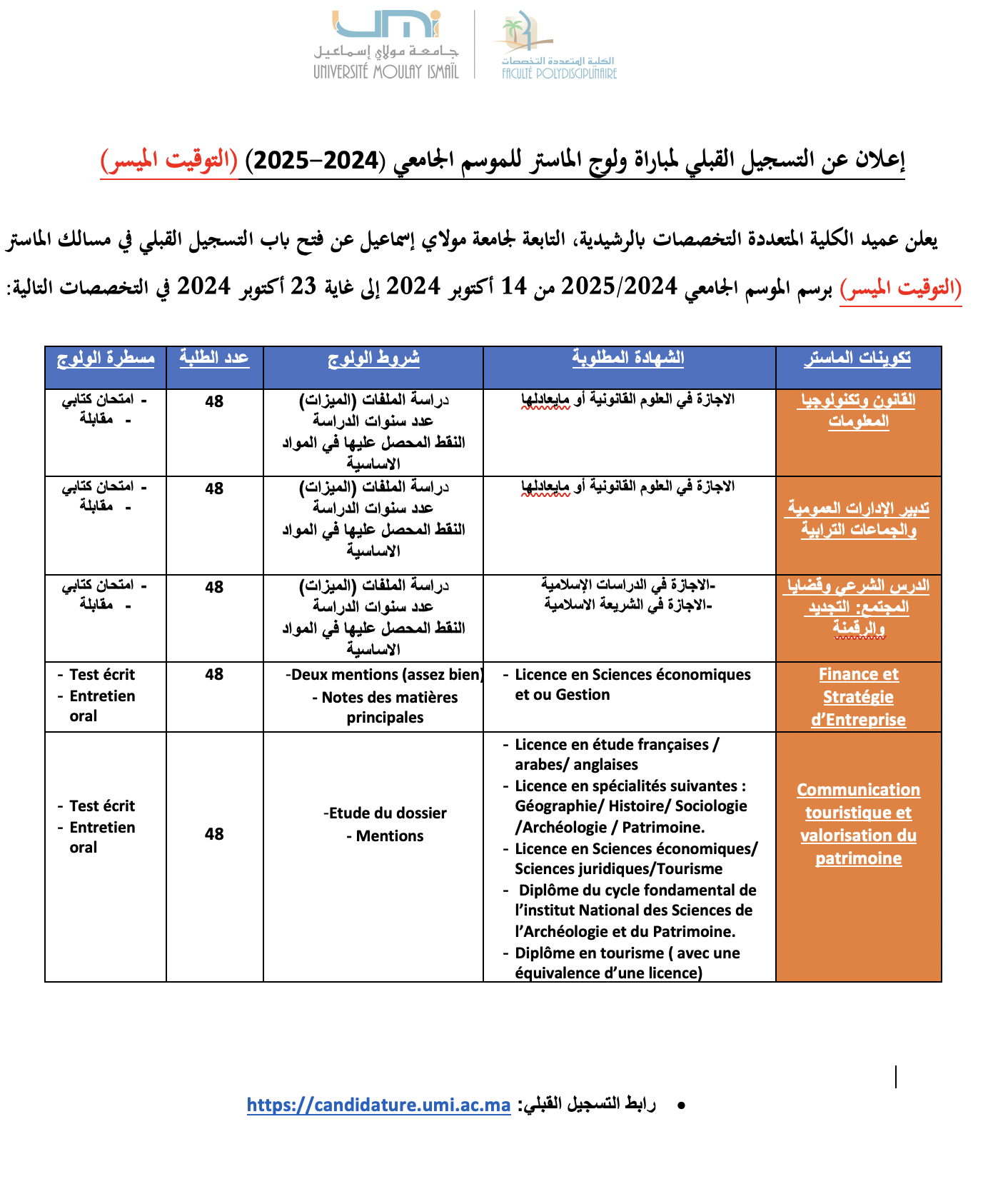 الإعلانات إعـلان عن التسجيل القبلي لمباراة ولوج الماستر للموسم الجامعي (2024-2025) (التوقيت الميسر) أكمل القراءة
