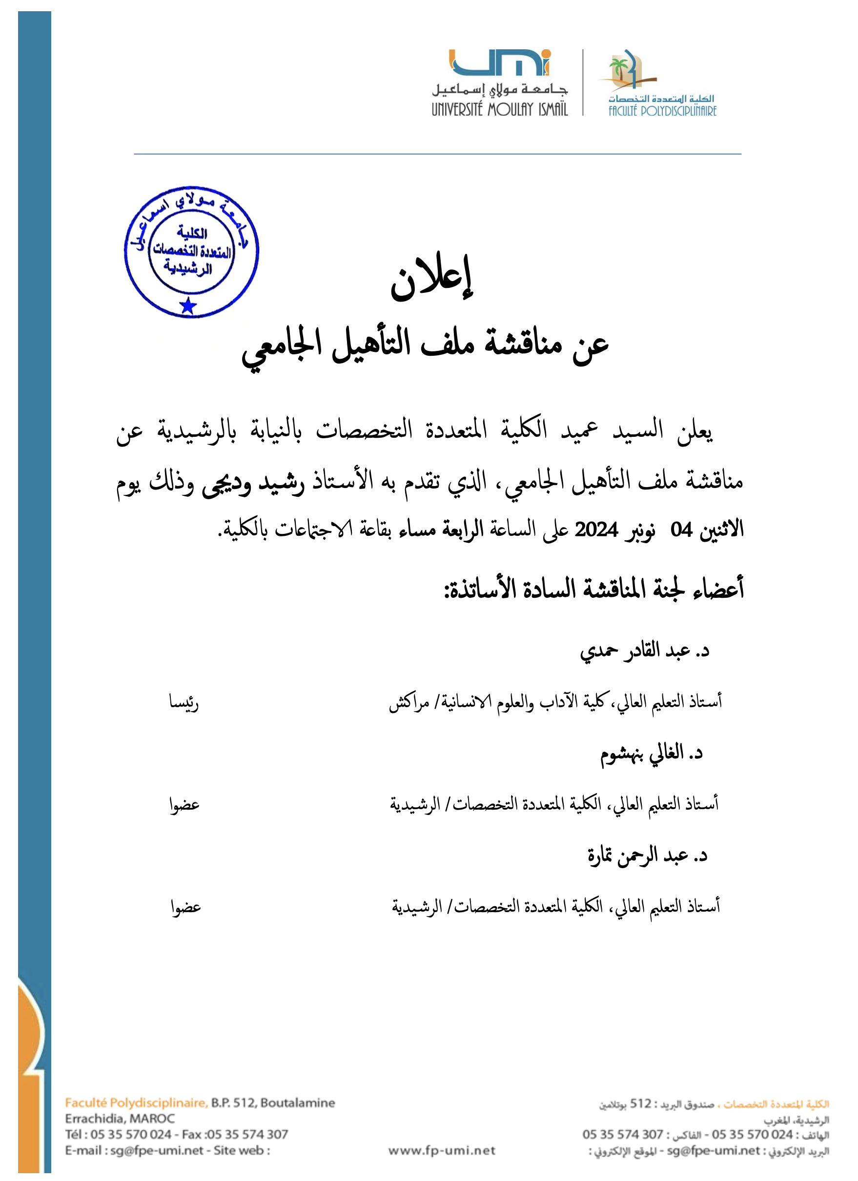 إعلان عن مناقشة ملف التأهيل الجامعي