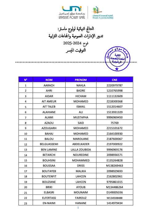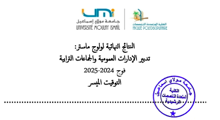 الإعلانات النتائج النهائية لولوج ماستر: تدبير الإدارات العمومية والجماعات الترابية فوج 2024-2025 التوقيت الميسر أكمل القراءة