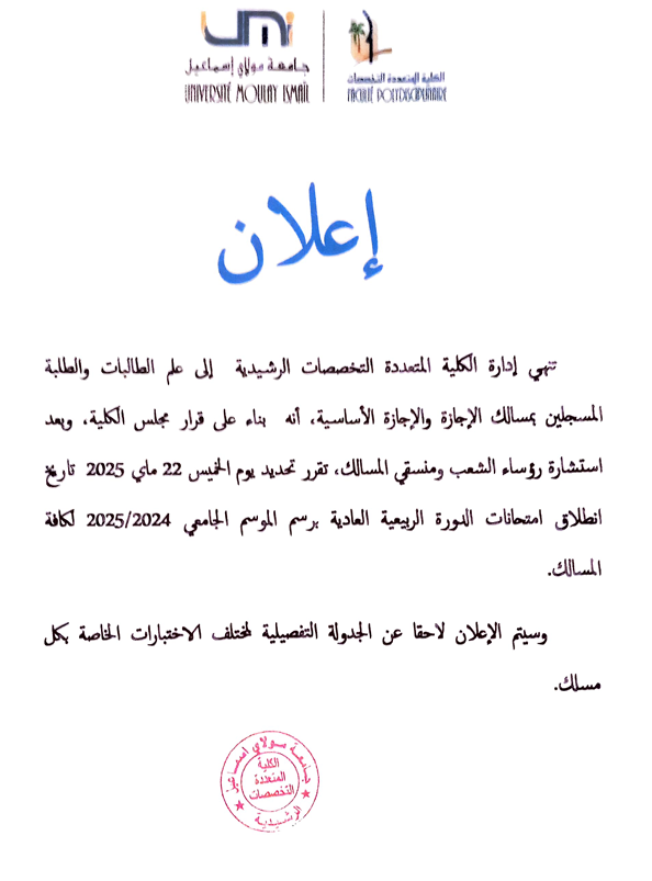 Faculté Polydisciplinaire - Faculté Polydisciplinaire Université Moulay Ismaïl